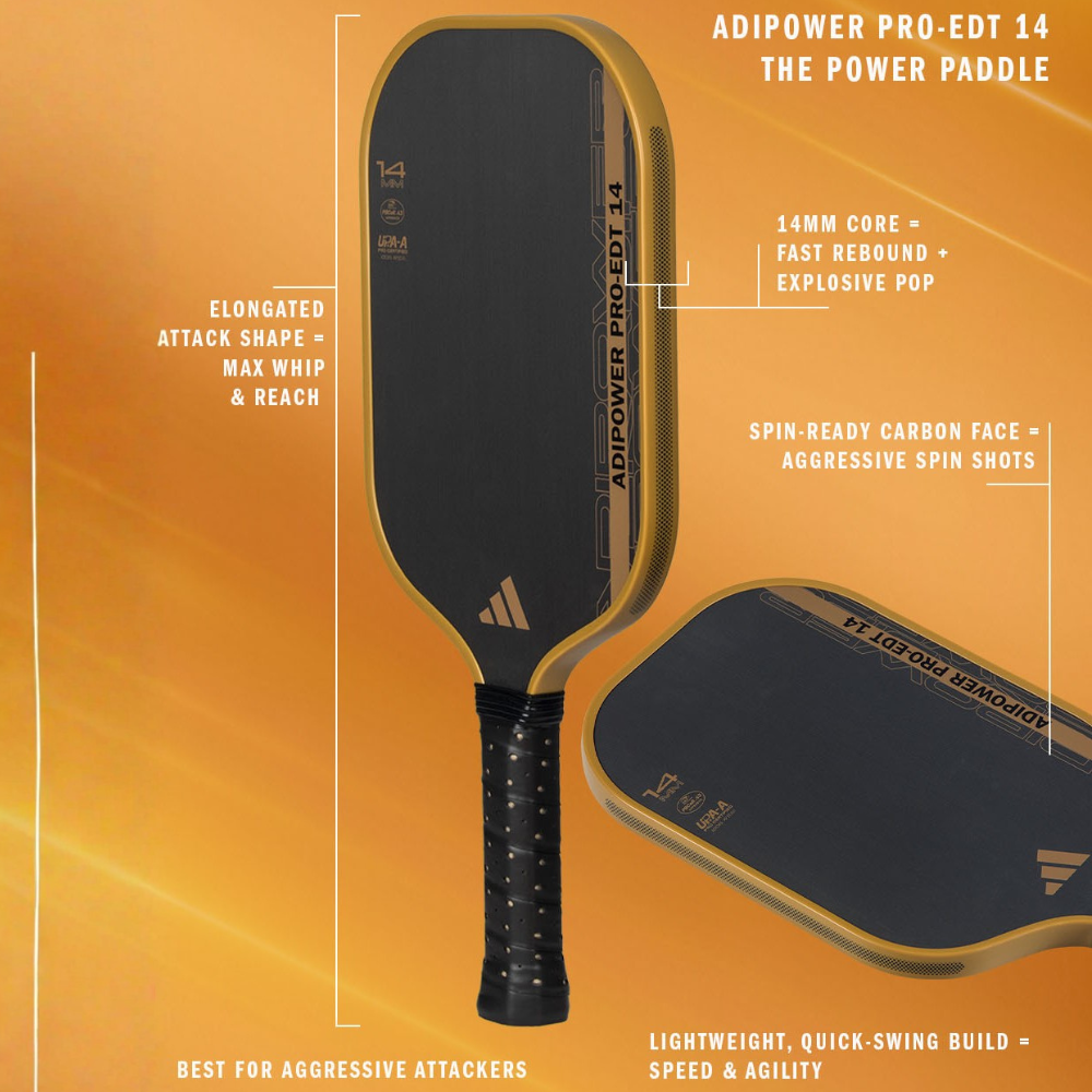 Created for players who like to attack, counter quickly, and dictate play from all areas of the court, the Adipower Pro EDT 14mm combines explosive power with fast handling and spin-friendly performance. From aggressive drives to quick hands at the kitchen, this paddle is engineered to keep you one step ahead.