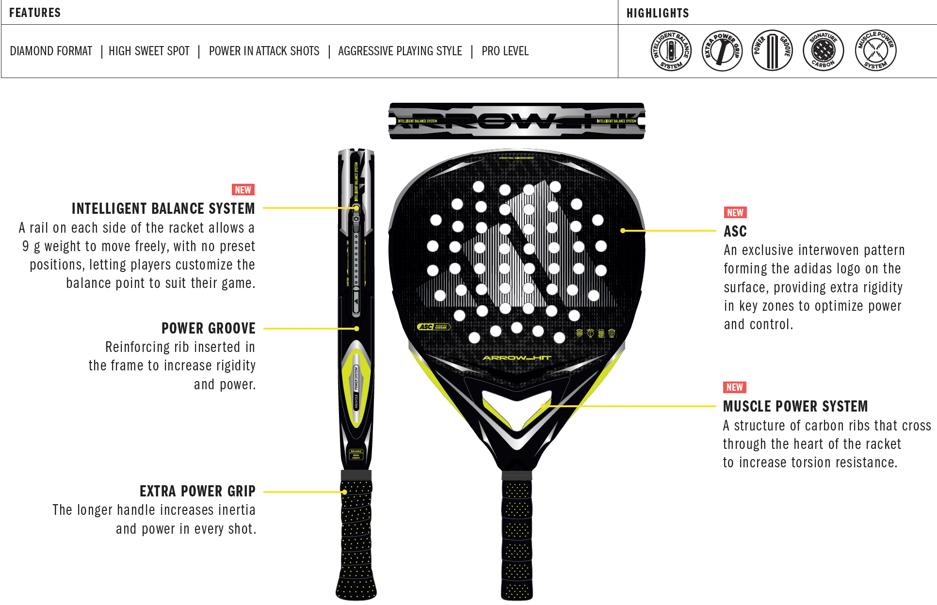 The Adidas Arrow Hit ATTK 2026 is built for players who want fast, explosive, attack-focused performance with maximum manoeuvrability. Designed with a diamond shape and a high sweet spot, it delivers powerful overheads and penetrating volleys while maintaining exceptional speed and control.
