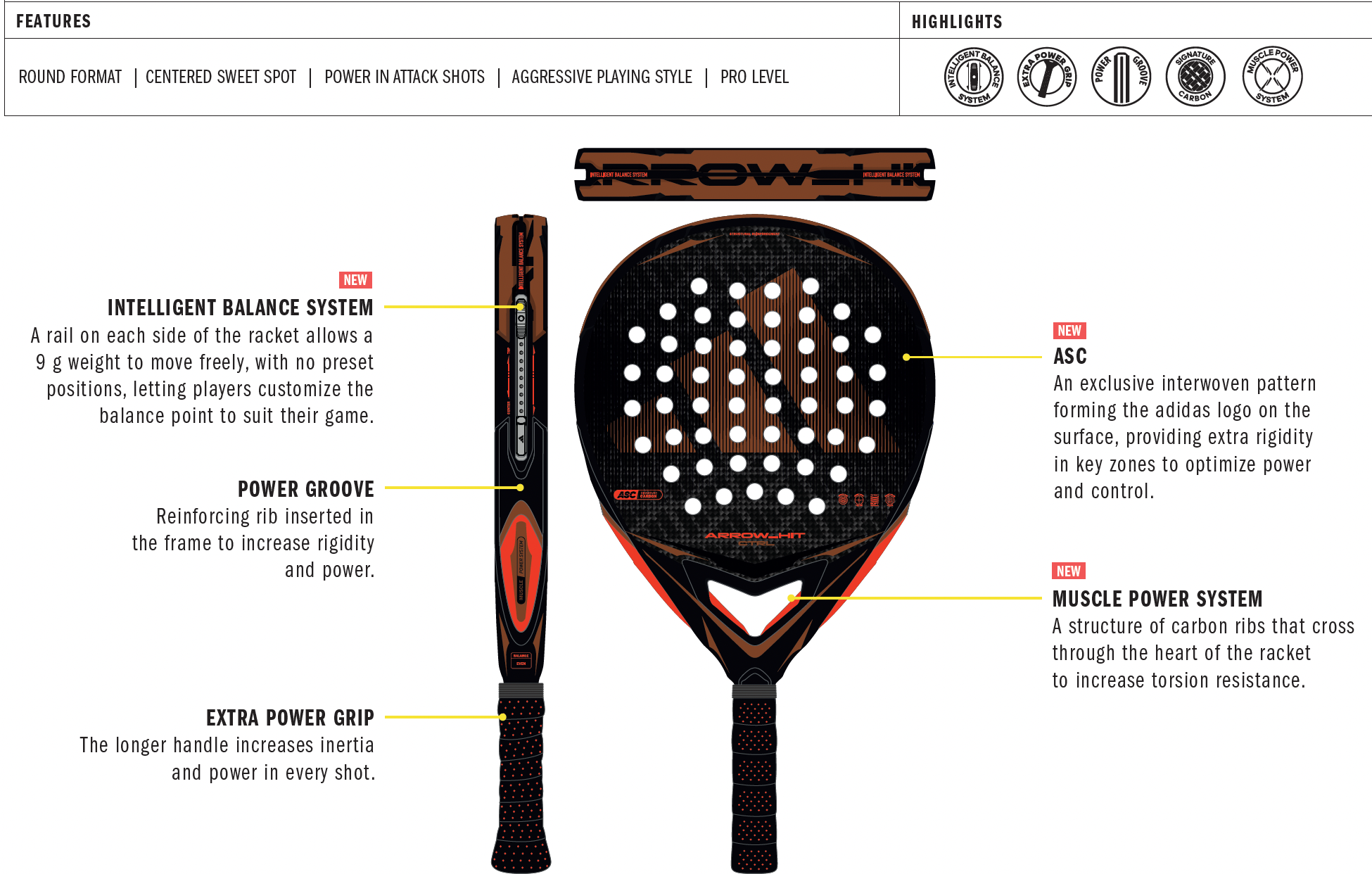 The Adidas Arrow Hit CTRL 2026 is designed for players who want maximum control, fast handling and exceptional comfort. With a round shape and a central sweet spot, it delivers consistent precision in defensive phases while still offering the speed needed for quick counterattacks.