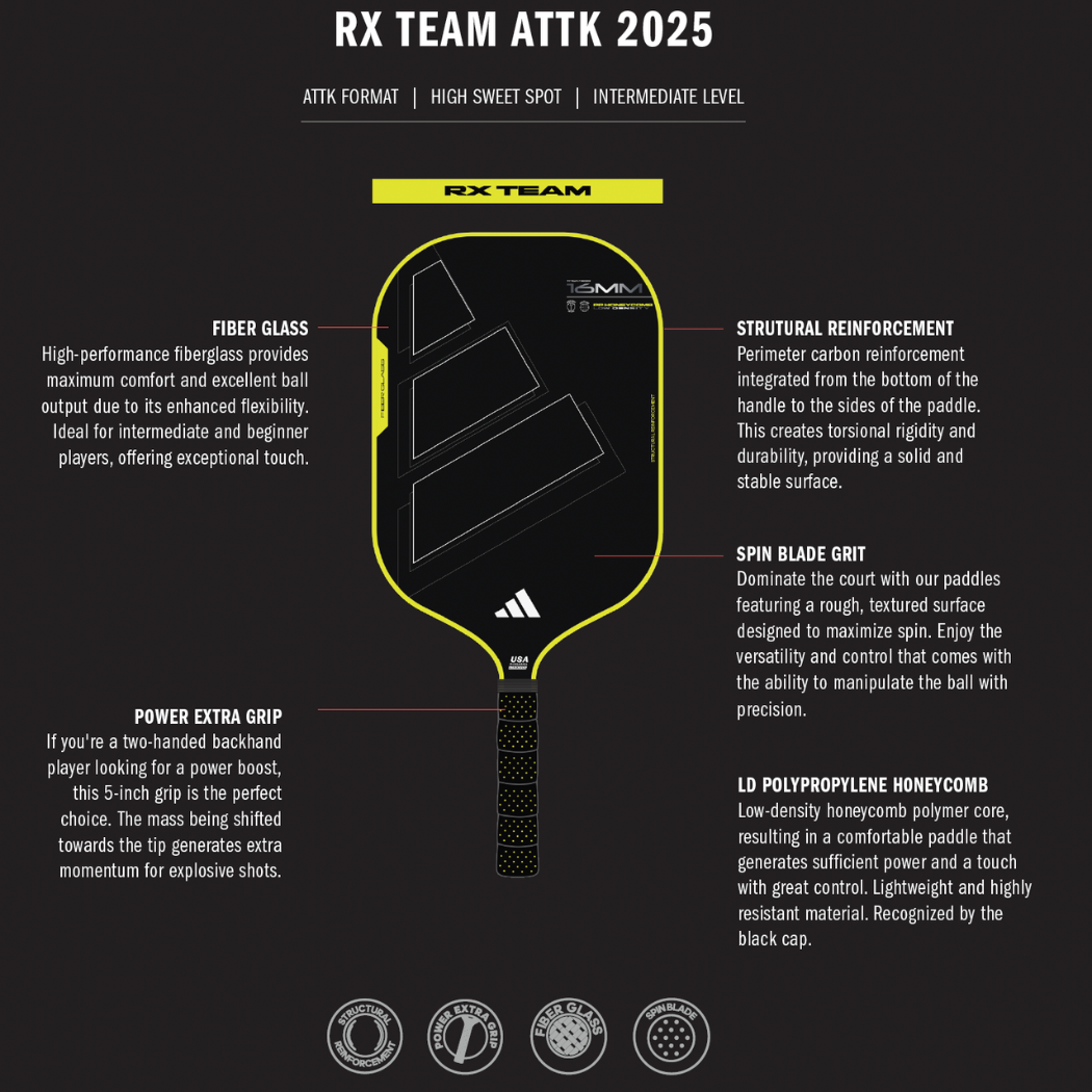 Adidas RX TEAM ATTK 2025 Pickleball Paddle (x1)